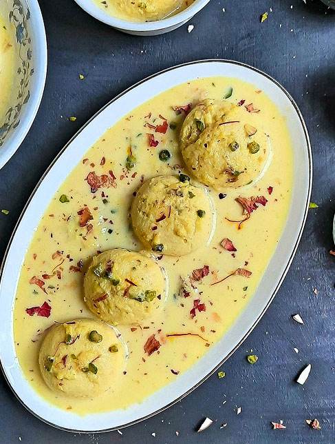 Soft, spongy, and soaked in a delicate sugar syrup, Rasgulla is a classic Bengali dessert that is loved
